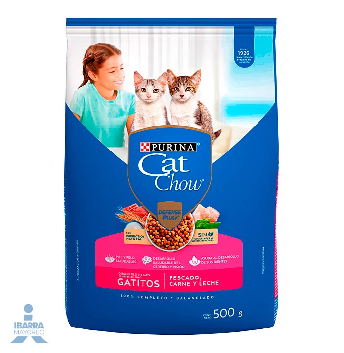 Cat Chow Defense Plus alimento seco gatitos sabor pescado carne y leche 500 g