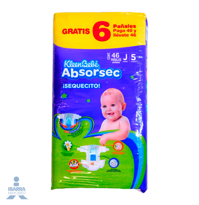 Pañal KleenBebé Absorsec Jumbo 40 pzas. GRATIS 6 pzas.