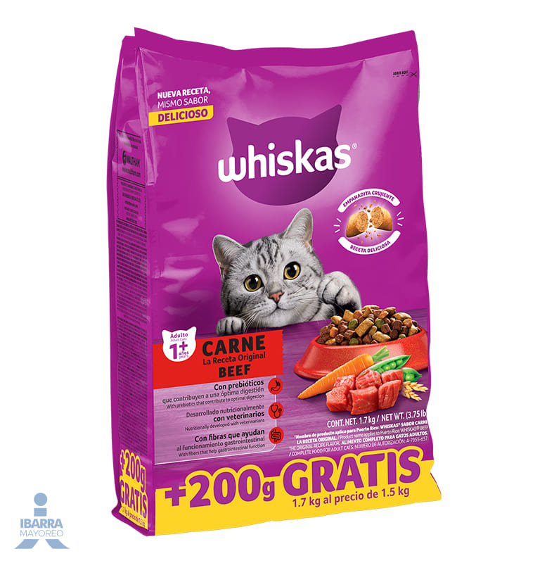Alimento Whiskas Carne Receta Original 1.5 kg + 200 g