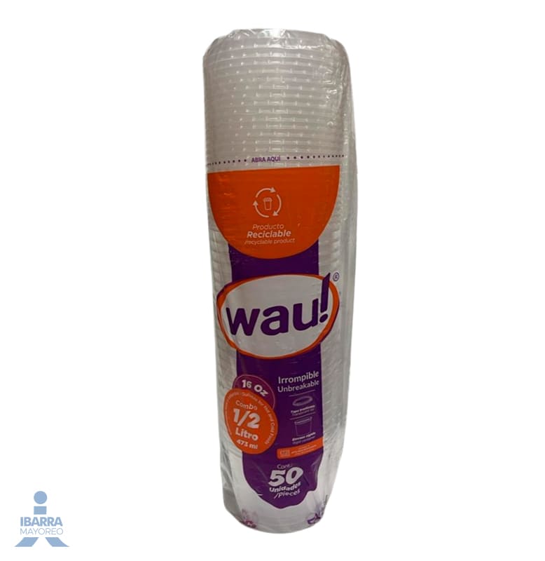 Envase plástico Wau con tapa 1/2 L 50 pzas.