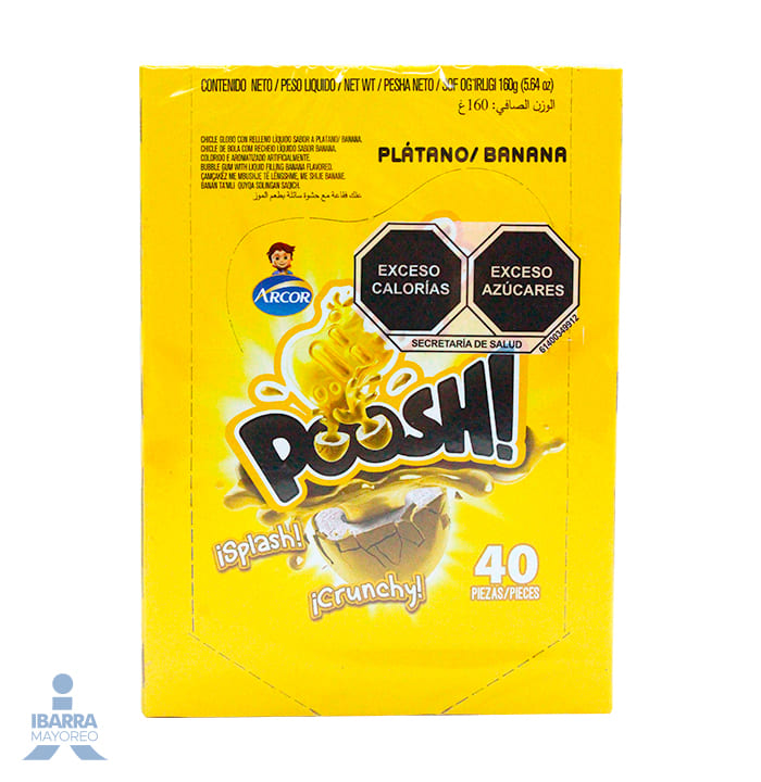 Goma de Mascar Arcor Poosh Sabor Plátano 40 pzas.
