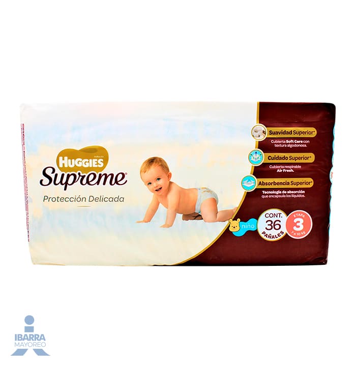 Pañal Huggies Supreme Pure Niño Etapa 3 36 pzas.