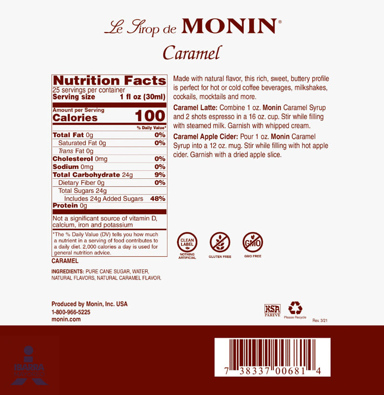 Saborizante Monin Caramel 750 ml